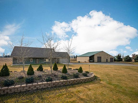 Gorgeous custom rancher with a huge 63x48 shop with a nearly full upper loft and sitting on over 5 acres with amazing prairie sunset views! An open floor plan with vaulted ceiling brings plenty of natural light. High-End finishes throughout and an addition unfinished 700 sqft bonus room to add your own finishing touches while building additional equity! Watch the amazing sunsets from your backyard or cozy up next to the real wood burning fireplace while watching the snowflakes fall! Experience that county living feel while being right outside of town!