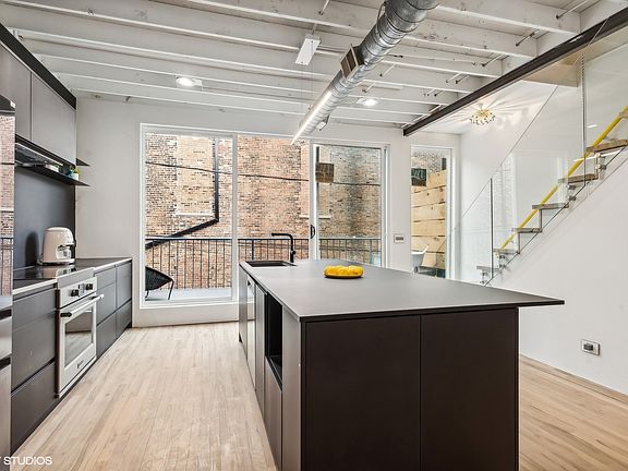 Welcome to 2156 W. Hubbard! This stunning 3BR, 3.5BTH single family row house offers almost 3,000 sq. ft. of living space and is one of the absolute coolest luxury loft properties in the entire city! Nestled in-between some of Chicago's most vibrant neighborhoods in a great West Town location near several Public transportation options including the Green Line "L" and multiple Metra lines, this truly unique property offers a flexible floor plan, perfect as your dream home or a combination work/live space. As you enter through the first-floor foyer, you'll be greeted by beautiful, brand new bleached Scandinavian hardwood floors, soaring exposed "Chicago Brick" walls spanning all three levels, and a gorgeous wood-burning fireplace. You will immediately notice how bright and spacious the unit feels thanks to its high ceilings, open layout, and the abundance of natural sunlight pouring from the top floor skylight. The first level also conveniently includes a full bathroom and direct access to your very own private 1.5 car attached garage! Continuing to the second floor, you'll find a massive combination living/dining/kitchen space, ideal for hosting guests. A brand-new kitchen with ultra-sleek and modern Italian style cabinetry and very large island as well as sliders to the first of two outdoor decks, perfect for your morning coffee or an evening glass of wine. A modern and remodeled powder room rounds out the second level. Upstairs, you will find full-sized laundry closet and two very nicely sized bedrooms, each featuring en-suite bathrooms and gorgeous, custom designed massive primary walk-through closet. The primary bathroom is a work of art that was just completed! All brand new, modern, sleek shower, an elegant stand-alone soaking tub with gorgeous hardware and stunning vanity. This dream bathroom is where modern design meets luxury. A second private deck off the primary bedroom is the cherry on top for the third floor of this amazing dream loft single family home! All these just minutes from some of Chicago's best restaurants, bars, shops and entertainment venues: Randolph Street, Wicker Park, West Loop, River North and of course, easy access to downtown! This property is the perfect place to call home. Don't miss your chance to live in this rarely available, one-of-a kind property!