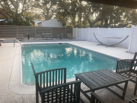 Pool house 1,704 square foot house on a 8,763 square foot lot with 4 bedrooms and 2 bathrooms. A great neighborhood location 3 min from Southside Elementary school, 5 min Sarasota high school, 15 min of Ringling art school, 4 min from Sarasota Memorial Hospital. Freshly painted, pool and furnishings. 12 min from the most beautiful and famous siesta beach. No sublease please. No covered parking garage is included.