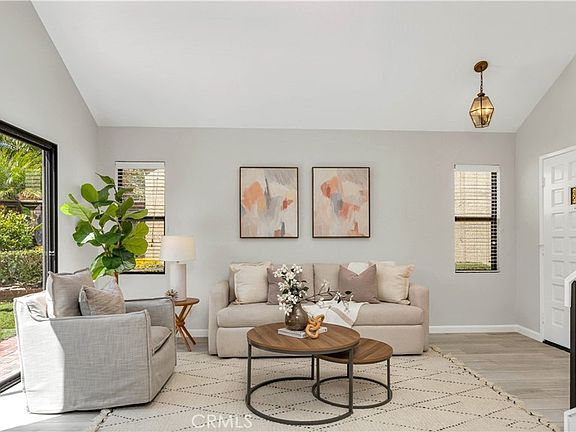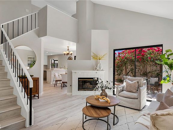 Tucked into the charming Sterling Heights community of Lake Forest, 21561 Kenmare Drive invites you to discover the ease and comfort of Southern California living. This 2-bedroom, 2-bathroom single-family home offers the perfect balance of cozy charm and modern updates—all set within one of Orange County’s most convenient and welcoming cities. Step through the front door and you're immediately welcomed by soaring ceilings and an airy, light-filled living space. Luxury vinyl flooring flows seamlessly throughout the main living areas, while fresh interior paint provides a clean, contemporary backdrop. The living room is warm and inviting, anchored by a classic white brick fireplace—ideal for cool evenings or lazy weekends at home. A thoughtfully designed layout places one full bedroom and bathroom on the main level—offering flexibility for a home office, guest space, or comfortable day-to-day living. Upstairs, the private primary suite serves as a peaceful retreat with high ceilings, natural light, and a well-appointed ensuite with walk-in closet. An open loft adds even more room to grow, work, or unwind. The kitchen looks out to a quaint backyard oasis where blooming Bougainvillea, citrus plantings, and a cozy patio set the stage for your morning coffee or relaxed outdoor dining. It’s a garden-sized yard that’s easy to maintain but full of personality—perfect for plant lovers, pets, or simply enjoying the California sun. An oversized two-car garage with built-in storage adds practical appeal, while low HOA dues and a quiet neighborhood atmosphere enhance the home’s overall value. Beyond the doorstep, Lake Forest offers a lifestyle of true convenience. Enjoy nearby parks, hiking and biking trails, top-rated schools, and easy access to shopping, dining, and the 5 and 405 freeways and The Toll Roads. With its beautiful master-planned neighborhoods, excellent city services, and community-focused spirit, Lake Forest continues to attract homebuyers looking for both quality of life and long-term value. Whether you’re starting fresh or downsizing with style, 21561 Kenmare Drive is a home where the next chapter feels just right.