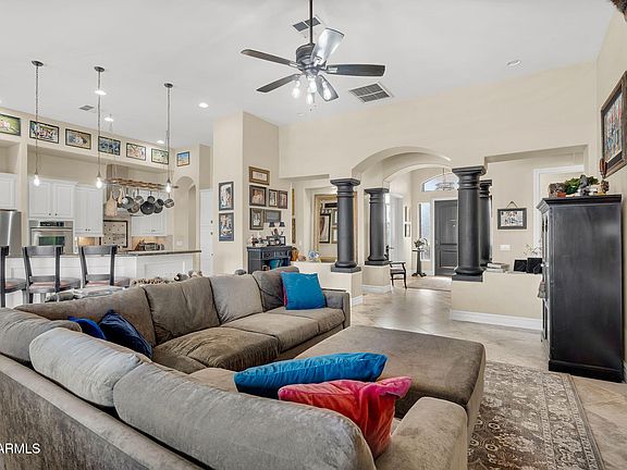 Welcome to Orchard Ranchettes in Queen Creek, an equestrian neighborhood known for its spacious lots, walking paths, and peaceful setting. This single-level home offers 3,600 square feet of living space with 6 bedrooms plus a private office. The floorplan is designed for both everyday comfort and entertaining, featuring open gathering spaces and thoughtful details throughout.