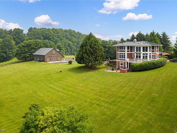 THE VIRTUAL TOUR IS A MUST SEE! BACK ON MARKET-BUYER’S HOME SALE DID NOT GO THRU. This property has it all, 10.5 ACRES, view, privacy & impeccably maintained. The inviting paved drive, manicured grounds, stone walls & stunning home beg you to stop and stare. There is a Mullett fully equipped custom kitchen, vaulted wood ceiling with skylights. Cambria counters, island/breakfast bar (seats 4) along with bench/coat storage. The dining room has a built-in hutch & tray ceiling. Half bath off main hallway. Impressive two story, octagon family room with full glass from top to bottom, wood ceiling, skylights, maple hardwood floors, wood pellet burner fireplace. A balcony from the upstairs hallway allows for a beautiful view through this room as well. First floor bedroom/den, (lg. safe in closet can stay). Full bath has walk-in, tiled shower, tile floors. Hardwood floors throughout. LL has FR, BR, BA, fantastic laundry room & full kitchen. The entire LL has hardwood floor & tiles. The home heats with electric geothermal, zoned heating/air. Walk-out basement leads to paver patio with gas firepit & hot tub. Wrap around porches, decks, paver patio/courtyard. 2+ car detach garage. The dream barn/pole garage truly has it all. Built 2013, 52 x 40 with a full, easily accessible full 2nd story + 2 dormers, 18 x 8 covered porch, BA/H20 heater, propane heat, air compressor, generator(hookup)240 panel. All roofs 9 yrs. Minerals do not transfer. 13 min. Leesville marina, 18 min. Atwood Yacht Club, 20 min. Tappan Lake. Too much to list!