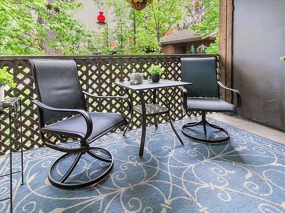 PRICED TO SELL! Nestled in the heart of Alpine, this beautifully updated 1-bedroom, 1-bathroom upstairs corner unit offers privacy and beautiful views of mature trees. Spanning 754 sq ft, the condo boasts an abundance of natural light and has serene natural surroundings. The home features soft gray neutral tones and brand-new laminate flooring. The kitchen features modern updates with clean finishes and functional design, while the bathroom has been thoughtfully renovated with luxury touches—including a spacious soaking tub/shower. A dedicated dining area flows easily into the living space, making the layout both functional and inviting. You’ll stay comfortable year-round with new central heating and air, and the spacious private patio is ideal for morning coffee, reading, or simply relaxing outdoors. The patio also includes a utility closet with laundry hookups. A walk-in closet in the bedroom adds extra storage and convenience. Alpine Oaks offers a quiet, well-kept environment with community amenities that include a pool and beautifully landscaped grounds. The HOA covers water and trash, providing even more ease to everyday living. Located just minutes from Alpine’s shops, dining, and freeway access, this condo is perfect for first-time buyers, downsizers, or anyone looking to enjoy low-maintenance living in a charming mountain town.