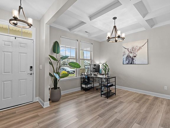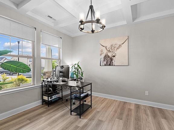 Welcome to your dream home, meticulously maintained and nestled perfectly on a quiet double cul-de-sac—ideal for those seeking serenity and limited traffic.$2,000 Garage Organizer Stays! Freshly painted in the popular Agreeable Grey, this stunning, better-than-new property combines modern elegance with thoughtful upgrades throughout. Upon entering, you're immediately greeted by an open-concept layout featuring upgraded Luxury Vinyl Plank (LVP) flooring flowing seamlessly throughout the main floor. The impressive flex/dining room boasts a sophisticated coffered ceiling enhanced by upgraded designer light fixtures, creating an elegant space for dining or versatile living needs. The spacious family room is bathed in natural light and features an upgraded corner gas fireplace, providing warmth and ambiance year-round. Your culinary adventures await in the expansive gourmet kitchen, which includes upgraded cabinetry, gorgeous granite countertops, stainless steel appliances, upgraded lighting fixtures, and an oversized optional island—perfect for entertaining or casual dining. The kitchen showcases a high-end Samsung 4-Door French Door Refrigerator with a spacious 28 cu. ft. capacity and a 21.5'' connected touchscreen Family Hub™, allowing you to manage groceries, stream music, and control smart home devices directly from your fridge. Additionally, the home's breakfast area has an extension upgrade, providing extra space to enjoy your morning coffee or weekend brunch. Retreat to the spacious primary suite, where tranquility meets luxury. Enjoy an oversized tiled shower complemented by custom upgraded shelving, dual vanity, and a generously sized closet. Two additional bedrooms are spacious, bright, and inviting, ensuring comfort for family or guests. The upper level includes upgraded LVP flooring in the laundry room and two of the three bathrooms, blending durability with style. This home is equipped with state-of-the-art smart technology, including two Smart Google Nest Thermostats, a Ring Doorbell Pro, and a comprehensive CPI-installed security system featuring a smart panel, exterior security camera, indoor motion sensing, window sensors, front and back door sensors, and smart garage control—offering enhanced convenience and peace of mind. Step outdoors into your private backyard oasis—fully fenced with an upgraded $2,000 fully sodded lawn, enclosed by an elegant 4½-foot wrought iron fence featuring a convenient 5-foot zero-turn entry gate, ideal for pets and easy lawn maintenance. The fun doesn't stop at your doorstep. Just three streets away, neighborhood amenities include a refreshing pool, playgrounds, soccer fields, a dog park, walking trails, and fishing ponds. Golf enthusiasts will appreciate the proximity to Zebulon Golf Course, while outdoor adventurers can explore Bunn Lake, only 20 minutes away. Perfectly situated off I-87, you're just 15 minutes from Knightdale/Wendell and a mere 25-minute commute to Raleigh, blending peaceful suburban living with urban convenience. This gem stands out with upgrades galore in a highly sought-after community. Act quickly—this exceptional home won't stay available for long!