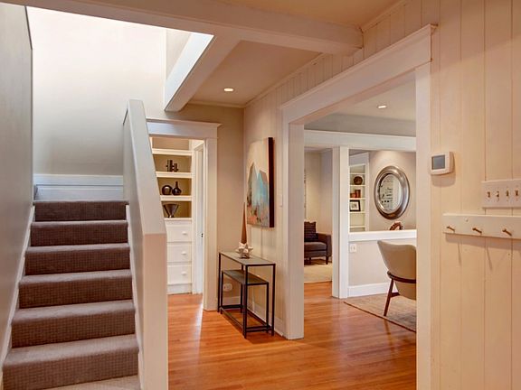 Stunning 1920 craftsman with hardwoods on a rare 6000sf lot! Welcoming front deck with eating area and plenty of light all day long! Updated electrical, newer roof and sewer make this charmer worry free. New carpet and vaulted ceilings highlight the upper bedrooms with plenty of room for seating area. Potential to re-work main floor bathroom for en-suite master, or enclose second sitting room on main floor for 5th bedroom. Basement has 1 bedroom with separate entrance.