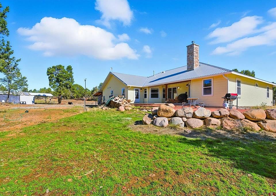 Set on 50 acres of usable land just 15 min to Durango, Colorado, this well-designed single-level home offers the rare combination of wide-open space, privacy, and everyday functionality, without the burden of an HOA or restrictive covenants. Inside, the thoughtfully laid-out 3-bedroom, 2.5-bath single story home offers over 2,300 square feet of comfortable living space, featuring a large open-concept great room that seamlessly connects the kitchen, dining, and living areas, ideal for both casual living and entertaining. The kitchen is equipped with generous counter space, abundant cabinetry, and a breakfast bar for easy meals or conversation, while the living room offers plenty of natural light and flow. A spacious primary suite is privately positioned and includes a large en-suite bathroom and walk-in closet, while two additional bedrooms and a full bath are located on the opposite side of the home, offering separation and comfort for guests or family. A dedicated laundry/mudroom adds convenience, and the oversized attached garage provides ample storage or workshop potential. A private dirt road leads from the home to D Bar K for 2nd access to home/land allowing access to the full lot. The land itself offers a balance of open meadows and wooded sections, perfect for those looking to start a hobby farm, keep animals, build additional structures, or simply enjoy room to breathe. Located just a short drive to the heart of Durango, you’ll enjoy proximity to restaurants, schools, and medical services, along with access to world-class skiing, fishing, hiking, and biking that make this area a top choice for those seeking a slower pace and outdoor lifestyle. Whether you're relocating for space, freedom, or the promise of a more connected way of living, this property delivers the rare opportunity to live with intention, on your terms, just minutes from one of Colorado’s most vibrant and livable mountain towns.