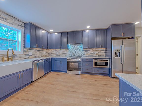 WOW! Move right in to this tastefully remodeled home with over 2,200 sq ft of living space. 4 bedrooms & 3 full baths. Situated on approx 0.65 acres with a small stream and mountain views. NEW metal roof and NEW heat pump 2024.The primary bedroom is on the main level and has an en-suite bath with a soaking tub, oversized porcelain tile shower, double quartz vanity and extra large walk-in closet. Enjoy cooking in the spacious kitchen with a farmhouse sink, gorgeous tile backsplash, gas stove and built in microwave. Covered side porch for your rocking chairs. Detached garage/workshop. Located just west of Etowah, this home provides convenient access to Asheville, Brevard, and Hendersonville, making it an ideal spot for country living yet being close to shopping, dining, schools, etc. A small portion is in the AE Flood Zone. Per seller, chimneys are not functional. The home has 2 septic tanks. Please see Agent Remarks section.