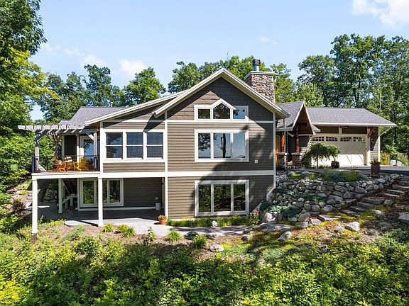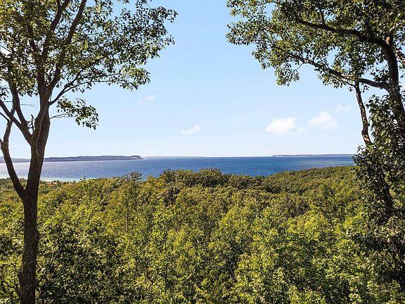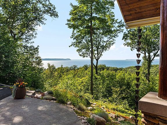 Gorgeous, former Parade of Homes winner with stunning views of Lake Michigan! Nestled on a beautifully landscaped, serene parcel, this 4 bedroom, 2.5 bath home features more than 3500 square feet including the finished walkout basement and a 4 car attached garage, and is located 280 feet above Lake Michigan for amazing views the lake and the Manitou Islands. Great room with soaring ceilings takes advantage of those views with windows bringing in plenty of natural light. Beautiful stone fireplace with natural wood mantel warms the space on chilly evenings. The spacious kitchen is a chef's dream with stainless steel appliances, an island with extra seating, and prep and storage space galore. Finished walkout basement is perfect for entertaining friends and family with a wet bar/beverage center. Primary bedroom features deck access and a private, ensuite bath with huge walk-in closet. Enjoy coffee in the morning from a three-season room with cozy heated flooring and those incredible lake views. Shared private road, approximately $200/year for plowing. Other features include: 50amp electrical in garage for electric/hybrid vehicles. Sprinkler system with rain sensor; all flowerbeds are irrigated. Propane hookup on deck for grill. Whole house 10kw generator with smart features. Two 500 gallon propane tanks with smart sensors. Whole house sound system. Composite decking. New oven & range (2023). New microwave, fridge, & beverage center (2022). New carpet (2021). Refinished hardwood flooring (2021). Woodburning fireplace with propane start assist.
