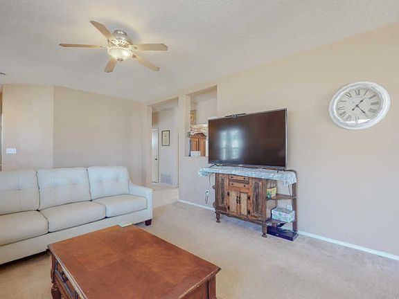 This charming home is close to Rust and UNM Medical Facilities, Santa Ana Events Center, shopping, restaurants, schools, parks and open space. The eat in kitchen is open and bright with wide open views to the North. The front yard is landscaped and the private oversized back yard has an open patio. Enjoy sipping your favorite beverage while watching Balloons land in the field behind you. Side yard has a sizable dog run. Don't miss out on this cute Home with NO HOA, New Roof 2016, One year old Evaporative Cooler and Brand new Hot Water heater!