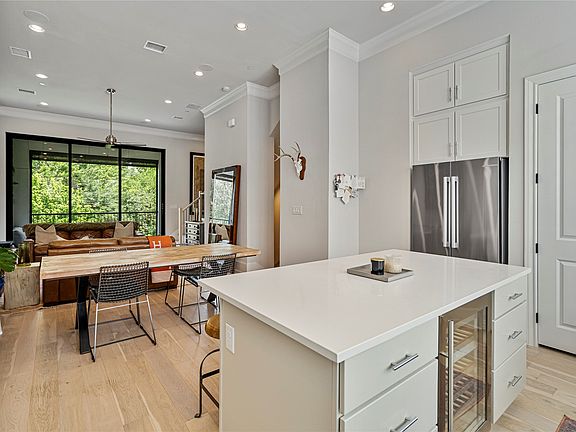 Welcome to 2157 Wenge Lane, a sophisticated, design-forward townhome in the desirable Oak Lawn-Uptown corridor. This stunning multi-level home blends high-end finishes, thoughtful upgrades, and city convenience just minutes from the Medical District, Downtown, Love Field, and the vibrant shops and dining of Oak Lawn and Highland Park. Step inside to a light-filled interior with clean lines, tall ceilings, and hardwood floors throughout the main living areas. The open-concept layout is ideal for daily living and entertaining, featuring a spacious living room with built-in surround sound for an elevated home theater experience. The sleek kitchen offers quartz countertops, a gas range, modern cabinetry, and a large island with waterfall edges. Retreat upstairs to the primary suite with a spa-style bath featuring a frameless glass shower, dual vanities, and a walk-in closet. A secondary bedroom with en-suite bath is perfect for guests, a roommate, or a home office. Step onto the private balcony, where an automatic drop-down screen enclosure transforms the space into a breezy indoor-outdoor lounge for movie nights or morning coffee without the bugs. The attached two-car garage features epoxy flooring and interlocking tiles, creating a clean, durable finish ideal for car enthusiasts or a home gym. The current owner has curated a true home experience with California shutters, a custom sun shade system, Bosch refrigerator & wine cooler, plus Sony 4k TVs and Sonos surround sound in the ceiling for an immersive entertainment experience. A premium washer & dryer set rounds out the upgrades, delivering elegance and convenience. This turnkey townhome is a rare find in the heart of Dallas. Buyers may be eligible for lender-paid credits up to 1% of the loan amount (up to $5,000) with our preferred lending team, applicable toward closing costs or a rate buydown. Custom scenarios available upon request.