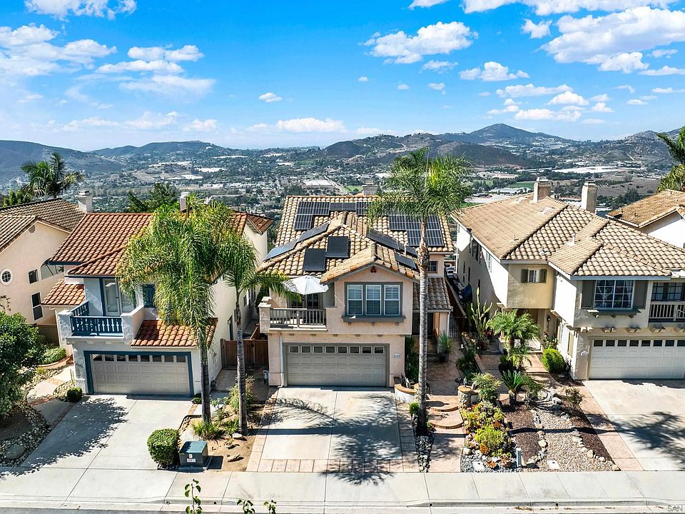 Emerald Heights stunner with ocean views! This fully renovated home offers a seamless blend of style, comfort, and functionality. Step inside to soaring ceilings and a bright formal living and dining room framed by glass doors showcasing expansive inland and ocean views. The dream kitchen features all-new finishes, an oversized pantry, and abundant storage. The spacious family room includes custom built-ins and picture-perfect windows, with a large laundry room and half bath conveniently located on the main level. Upstairs, new LVP flooring leads to an open hallway and four bedrooms, including a stunning primary suite with a private balcony to enjoy sunset and ocean views, an incredible remodeled bathroom, and a generous walk-in closet. The home also features fully owned solar and a new HVAC system, offering both comfort and efficiency year-round. The backyard is designed for entertaining with low-maintenance landscaping and plenty of space to gather. Located in the desirable gated community of Emerald Heights and zoned for the San Marcos School District, residents enjoy no Mello-Roos, a low HOA, and resort-style amenities including 24/7 security, walking trails, basketball courts, gym, Jr. Olympic pool, playground, kiddie pool, clubhouse, and a full calendar of community events throughout the year.