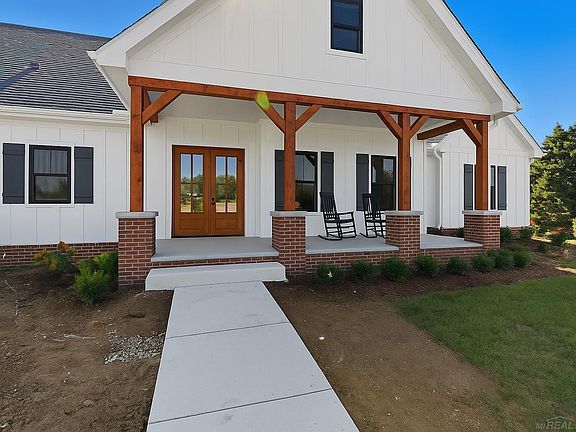 Welcome home to The Aspen Hill! This MOVE IN READY, new construction custom home boasts high-end finishes with an open concept layout and Craftsman style charm. Sitting on almost 2 Acres – This stunning and expansive SPLIT RANCH with bonus room provides both quiet country charm and modern conveniences. Designed with meticulous attention to detail and true one-floor-living in mind, this home boasts high-end finishes including custom cabinetry, premium appliances, lighting upgrades, hardwood floors, custom tile work, upgraded hardware, and plenty of room to roam. Enjoy the sun drench open-concept great room with vaulted ceilings, wrapped in windows, seamlessly connected to the gourmet kitchen with spacious pantry and oversized island ideal for entertaining. A bonus room ensuite offers flexible space perfect for a playroom, additional home office space, an inlaw suite, media room, or just more room to expand. Steps from the 1st floor laundry, the private master suite showcases luxurious finishes including custom marble tile, a curbless walk-in shower, a soakers tub, dual sinks all complete with both his and her closet space. The additional bedrooms are generously sized, offering comfort and privacy for both family or guests. A private office overlooking the expansive green space makes this one truly unique. Outside you will find an entertainer’s dream with a large covered front porch as well as an oversized rear covered patio complete with a gas fireplace, built-in grilling area, beverage fridge, and additional outdoor storage. Outdoor touches include landscaping, fresh trees, bushes and shrubs, brick paver work and new concrete. Plenty of room for your custom barn or outbuilding. If you’re seeking a move in ready new construction retreat with the perfect mix of country living and upscale design, this property delivers it all.
