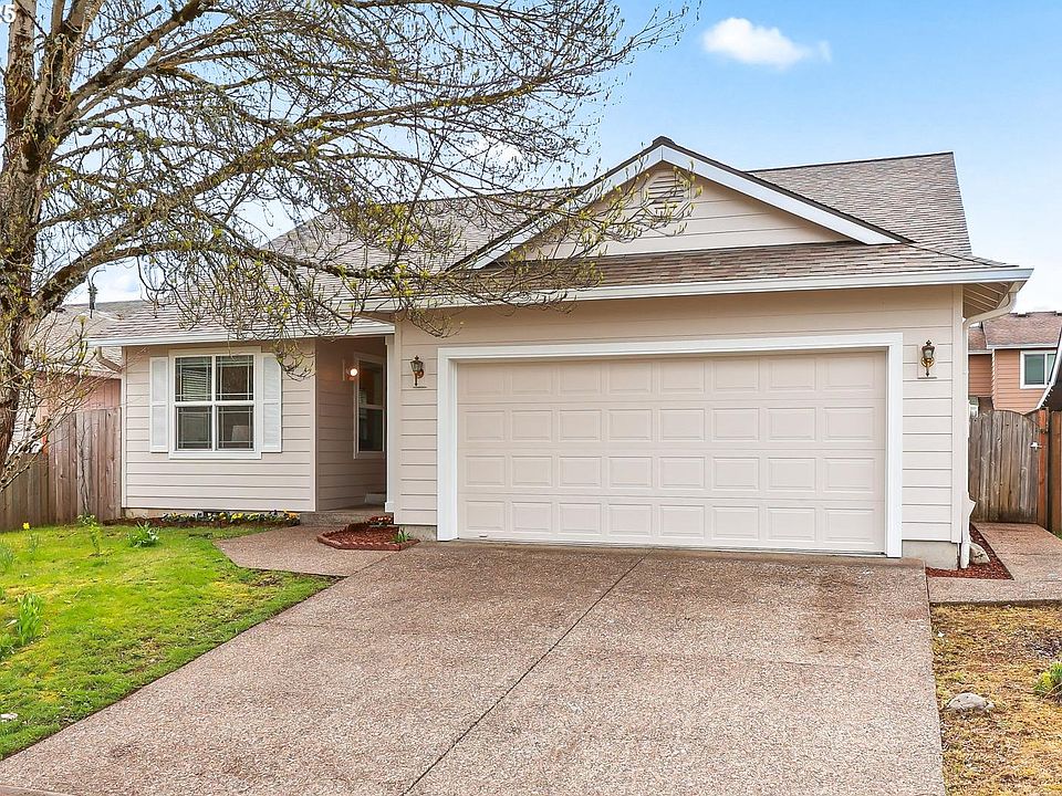 *Open Sat/Sun 1-3pm* The perfect find! This sun-drenched one-level offers a fantastic vibe and flow, located on a quiet, circular street with no through traffic, yet just minutes from Beaverton’s best amenities! The functional floor plan features well-proportioned rooms, including an open-concept living and dining area with dramatic vaulted ceilings and Luxury Vinyl plank floors, making it ideal for entertaining. The vaulted kitchen is large and open with an island, free standing fridge and pantry. The eating area has a slider to the flat fenced in low maintenance backyard. Vaulted primary bedroom includes a walk-in closet and ensuite bathroom. Two more bedrooms are off the hallway along with a full bath & laundry area. The 2-car garage provides excellent storage for all of your toys. Freshly painted INSIDE and OUT, with beautiful new white-washed Luxury Vinyl Plank floors throughout. Conveniently located near Orenco Station shops, cafes, schools, parks, and MAX. This established neighborhood is the perfect place to call home!