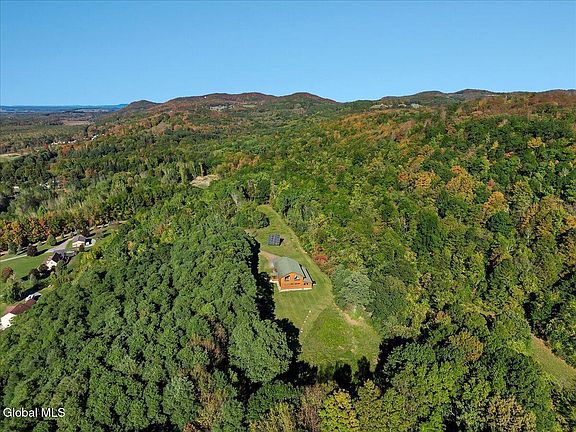 Modern country retreat meets energy-efficient luxury on 25 stunning acres! This 14-yr old, 3bdr/3ba Cape features a 2-car garage w/ a Tesla charger and a full solar panel powering geothermal heating/cooling for yr round comfort. The open-concept layout showcases a gourmet kitchen w/ SS appliances, cathedral ceilings, and Energy Star-certified windows that retain heating/cooling. Enjoy the covered front and back porches, a custom sunroom, jacuzzi, radiant floor heating, central vacuum, and a large full basement that offers 2 access points. Centrally located between Lake George and Saratoga, just 30 min to each, 1hr away from Albany International Airport and close to both Manchester, VT, and Williamstown, MA. Low utility bills, modern amenities, and serene country living-whether you envision it as a beautiful residence or a short-term rental, this home and property presents endless opportunities and potential. Schedule a private showing today and come see it for yourself.