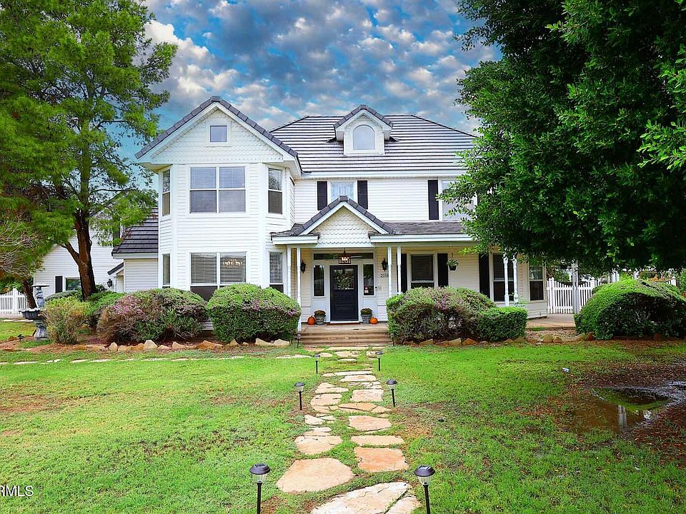 Rare Find! Beautiful, updated Victorian in Lehi Historic Homest district features engineered wood floors, crown moldings, and antique fixtures. No HOA! Located on grassy lot surrounded by trees, this move-in ready home includes a lock and leave attached guesthouse over the 3-car garage, large primary bedroom on first floor and charming Juliet balcony off 2nd floor. Plenty of entertaining room for family and friends during the holidays, or poolside in the summer. Easy access to airport, shopping, dining, ASU, and spring training games.