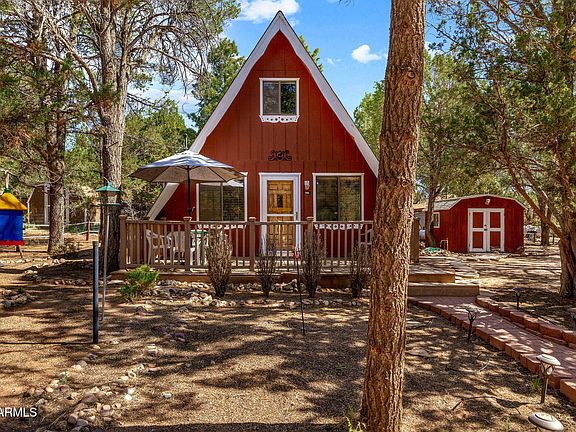 Heavily treed with towering Ponderosas and junipers on .43 of an acre, this private corner lot offers the perfect mix of tranquility and function. The charming furnished site-built home features a warm T&G ceiling, laminate wood floors throughout, 1 bedroom downstairs, an open loft bedroom upstairs, and 1 full bathroom. Stay cozy year-round with multiple heat sources. Outside, enjoy the spacious RV parking with electric hookup, plus a utility shed equipped with electric—ideal for storage or hobbies. No HOA restrictions mean more freedom to make it your own. Whether you're seeking a peaceful getaway or a full-time retreat, this unique property offers privacy, natural beauty, and versatile living space. Don't miss this rare opportunity!