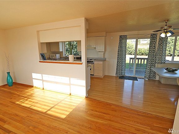 Ferndale neighborhood rambler - affordable 3 BR 1 BA, 1,012 SF built 1985 on cul de sac with sidewalks with fully fenced backyard. Bright, open concept floor plan. Hardwood and softwood flooring. Mostly level lot with space for gardening and raised backyard deck and patio for entertaining and morning sun. Small outbuilding and apple tree in back. Garage and additional space for off street parking, even for an RV. Close to downtown Ferndale and walking distance to high school, 10 minutes to I-5.