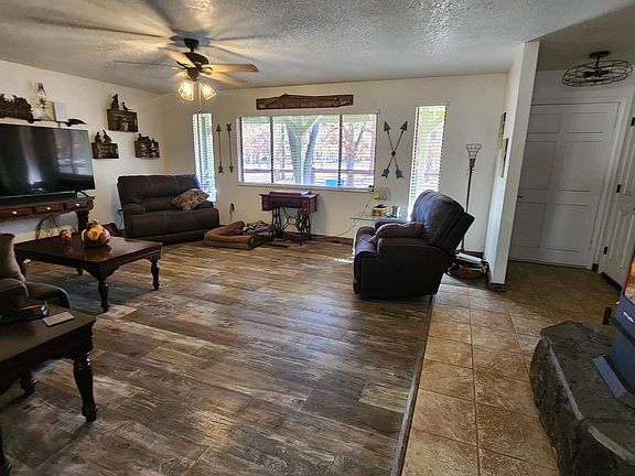 This 3/2 is set off the road on it's own 5+acre wooded retreat. New floors and new plumbing. Spacious light and bright kitchen with lots of cabinets. Living room with free standing pellet stove. 2 car attached garage plus a 24 x 24 carport and covered outdoor patio. Water lines have been replaced and non freeze faucets around outside house. Front and backyard sprinklers. Plenty of room for horses or animals plus lots of opportunities for viewing deer and other wildlife, and close to fishing- Hat Creek and Rising River.