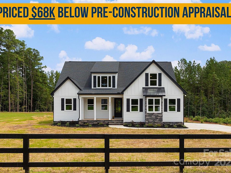**Motivated builder! Just reduced price by $50K** Move-in ready, this beautifully crafted home sits on over an acre with no HOA and quality finishes throughout. Thoughtfully designed, the 3-bedroom, 3-bath layout features quartz countertops in the kitchen, granite in the baths, and luxury vinyl plank flooring on the main level. The open-concept kitchen is a showstopper with pendant lighting over the island, stainless appliances, and an easy flow into the spacious family room — complete with an electric fireplace for cozy evenings. Upstairs you’ll find a large bonus room, office, and a full bath offering ideal space to work from home, host guests, or create a media room. Enjoy timeless curb appeal with Hardie siding, covered front and back porches, and a concrete driveway. Oversized walk-in closets and generous attic storage keep everything in its place. Tucked just outside the city limits, this peaceful retreat offers the privacy you crave with quick access to interstates, shopping, and dining. A pre-construction appraisal valued the home at $767,000 — a testament to the craftsmanship and design.