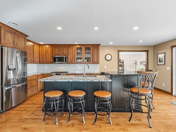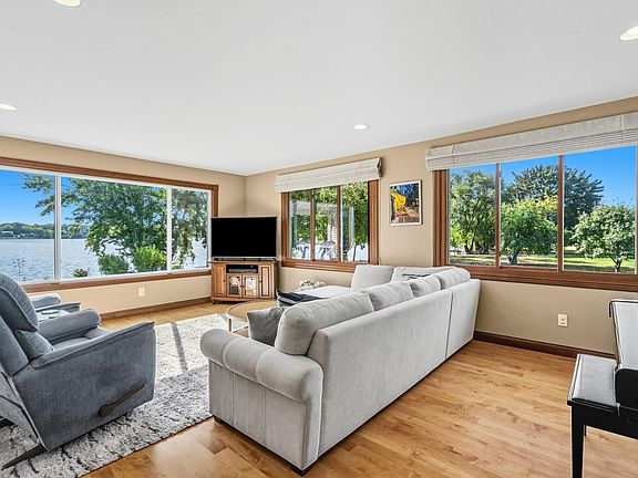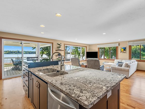 Fox river frontageGourmet kitchenHardwood floorsCovered porchBeautiful yardWalk-in tile showerDouble vanity