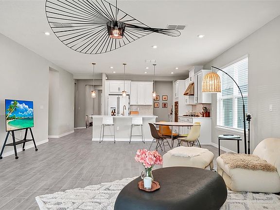 This gorgeous 4 bedroom/3 bathroom, 2 Car Garage home in one of Clermont’s most sought-after communities- HIGHLAND RANCH! Perfectly positioned near the Olympic Training Center and just 10 minutes from the new Costco, With thoughtful upgrades and modern finishes throughout, this home is a true masterpiece tailored for today’s lifestyle. To the left, you’ll find a versatile office space—perfect for remote work or creative projects—along with a second bedroom featuring a full bath, ideal for family or guests. At the heart of the home is the chef’s kitchen, featuring a striking quartz island, built-in double ovens, gas stove, and upgraded refrigerator. Designer tile backsplash, 42-inch cabinets, and wood-look tile flooring combine style with practicality. A spacious walk-in pantry and generous breakfast bar overlooking the family room complete the open-concept layout—perfect for both everyday living and entertaining.The owner’s suite is privately tucked away, offering a serene retreat with an oversized walk-in closet, a spa-inspired ensuite bath, and a layout designed for ultimate comfort and relaxation. The Highland Ranch Community is amazing with resort style amenities that includes a huge pool, splash pad, playground, basketball court, fenced dog park, fire pit, and volleyball court! Close to Turnpike, shopping & more, this Home & Community will be your perfect Florida Home! Schedule a showing today!