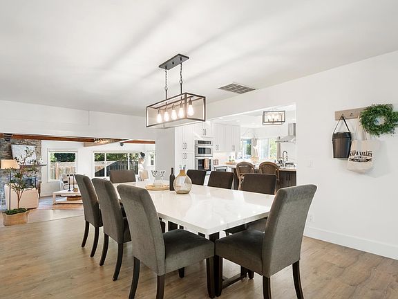 Discover the endless possibilities that await on this expansive, level 1-acre lot in South Napa. Offering a truly peaceful country setting while remaining conveniently close to town amenities, this property presents a unique blend of privacy and accessibility, and is on city services. With the home thoughtfully situated to one side of the property, the expansive and fully usable acre offers outstanding potential for those looking to subdivide or expand into a family compound. With well water dedicated to irrigation, this versatile land provides the ideal foundation for additional dwellings, gardens, or recreational spaces, all while maintaining the peaceful, private setting and beautiful Skyline Park views. The truly spacious home boasts over 3,800 SF, providing exceptional versatility with a generous layout of 5 bedrooms (including 2 en suites) and 3.5 baths. The home offers abundant living spaces, featuring multiple distinct interior areas and various outdoor entertaining areas, making it great for any season and ensuring lots of space inside and out. Ample closet and storage space throughout adds to its practical appeal. The beautifully updated kitchen is a chef's delight and the heart of the home. It features a large island with an apron-front sink, gas range with a main oven, complemented by a second built-in oven and microwave. Loads of cabinet storage, plus additional storage and a second freezer conveniently located in the adjacent laundry room. The primary suite is a private, light-filled retreat, tastefully updated for comfort and luxury. It includes a large walk-in closet and French doors that open directly onto a newly poured concrete patio. The spacious primary bath offers dual sinks, a separate soaking tub, a beautifully tiled shower, and a private water closet. Outside, the fully fenced grounds are your ultimate blank canvas for imagination. This level, open acreage is ideal for a lush garden, secure storage for utility vehicles, accommodating 4-H animals, or installing the in-ground pool of your dreams, there is room for it all! The property also features a substantial detached 1,300+/- SF garage, which provides ample workspace for hobbies or projects along with additional covered storage. Furthermore, a detached studio space is perfectly suited for a private home office, fitness room, or dedicated creative space. This is a truly unique property and an exceptional offering in Napa Valley.