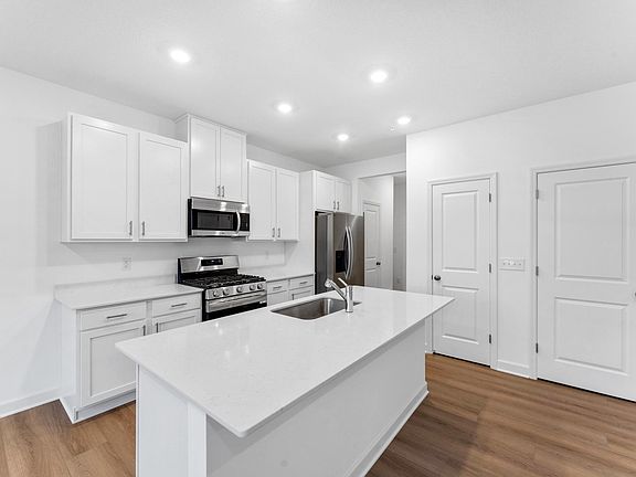 This home is available for a quick close! Ask about how to qualify for savings up to $5,000 with the use of the Seller's Preferred Lender! Step into the Raleigh, where modern design and functionality come together seamlessly. The open-concept main level boasts 9-foot ceilings and a flowing layout that effortlessly connects the kitchen, family room, and dining area—perfect for gatherings. The kitchen is a showstopper, featuring sleek white cabinetry, quartz countertops, stainless steel appliances, a gas range, a spacious center island, and a chic tile backsplash. For added ease, blinds are already installed. Upstairs, you’ll find 3 bedrooms, 2 baths, and a convenient laundry room. The primary suite serves as a relaxing retreat, complete with a private bath and an expansive walk-in closet. Additional features include a two-car garage and a charming patio. Situated near walking paths and trails, with quick access to shopping, dining, and Highway 169, Summerland Place offers the lifestyle you’ve been looking for!