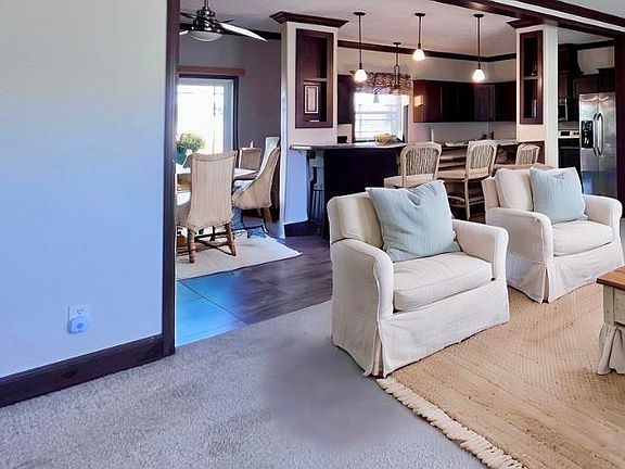 Charming Country Retreat with Lake Views. Enjoy tranquil mornings or evenings on your back deck, overlooking a nearby lake surrounded by nature. The property offers beautiful views from the kitchen as well, adding to the serene atmosphere. Situated on a 1.84 corner lot, this home combines the peacefulness of country living with the convenience of being just outside of town, and close to amenities such as a golf course, Walmart, and medical facilities. This spacious manufactured home features:3 Bedrooms and 2 Full Baths, a large living room with a stunning fireplace (never hooked up, just waiting for your personal touch), 9' Tray Ceilings throughout the home, a gorgeous kitchen with a large bar perfect for casual dining, an open dining/TV room that seamlessly flows into the kitchen and living room. Outside, you'll find a Double Cedar Pergola-style Carport with ample parking space, nice size back deck, front porch and plenty of room for outdoor activities on the spacious lot. Additionally, the seller is offering a $5,000 credit to the buyer for a shed, allowing you to add even more storage or outdoor space to suit your needs. $209,900.00