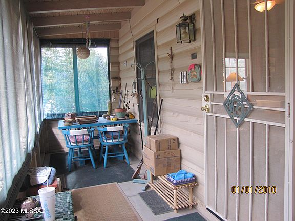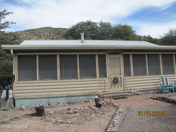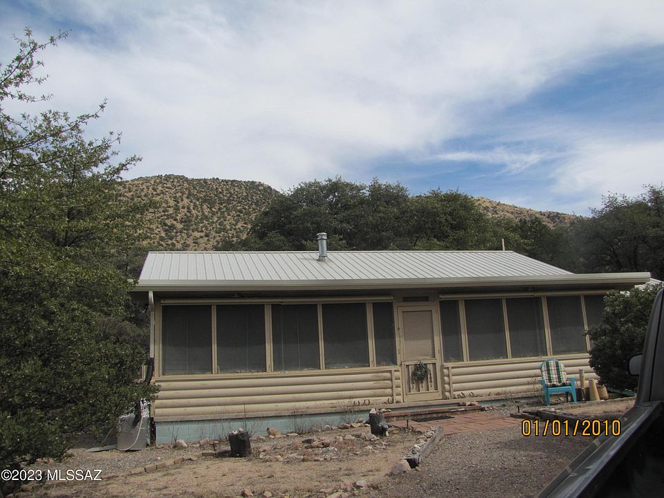A diamond in the forest! Custom built 2BR/2Ba log cabin on 1.5+acres in the Coronado Natl Forest where Apache Chief Cochise once lived. Screened front porch has magnificent mountain views. Open floor plan with open beam construction and wood burning stove in living room. Breakfast bar and built-in desk in kitchen. Window above range looks onto deck and tree-filled backyard. Both bedrooms have built-in underbed dressers. Both bathrooms have showers. Office/extension to 2nd BR with private entrance from sitting area outside. Outbuilding with electric has multiple possibilities. Unattached garage with workbench and lots of storage. Well share with 1 other property. Majority of property is fenced/cross fenced.
