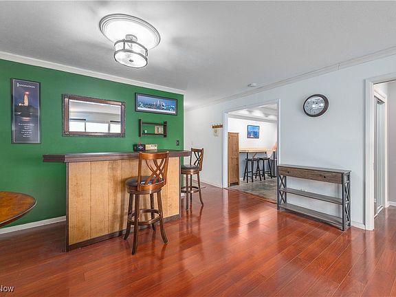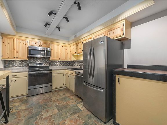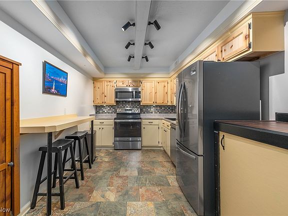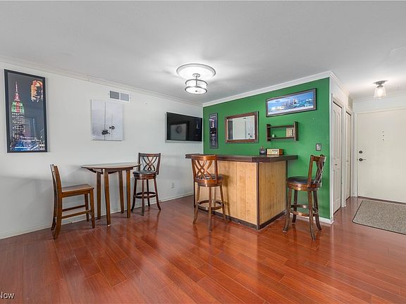 Fantastic Opportunity to own in Rocky River!! This move-in ready, 1 bedroom, 1 bath unit is located on the top floor (5th floor) accessible by elevator! The unit has been updated over the years with vinyl windows & laminate flooring, updated light fixtures & much more. The kitchen doorway was widened for a more open & functional atmosphere. It is updated with stainless steel appliances, tile back-splash, under cabinet lighting & offers tons of cabinet & counter space. The dining area currently has a dry bar. The unit features open concept living & is filled with natural light from a wall of windows/slider that opens to a spacious south-facing patio on which you can enjoy park-like city views. The bathroom has been completely remodeled with a walk-in shower, vinyl flooring, toilet, vanity & light fixtures. The spacious bedroom features double closets & 2 large vinyl windows providing more natural light. All the TV’s are staying. Cliff Towers is an owner occupied building that's well maintained. It offers a storage locker on the same floor, newer laundry machines on each floor & a party room with bathrooms & a kitchenette to use for larger gatherings. The Monthly maintenance fee includes heat, water, sewer, trash, snow removal, landscaping, and building security system. Owner only pays monthly electric, cable/ internet. The property at Cliff Towers backs up to the picturesque Rocky River Metro Parks - the grounds are well maintained & views are beautiful. The building has an underground heated garage - An indoor parking space is $35/month on a first come first served waiting list basis through Lawrence Management. AWESOME LOCATION! Quick access to the Metro Park, Old Rocky River, Westgate Mall & Lake Erie - Everything you need is less than a 5 min drive to restaurants like Salmon Daves, Heinens, Joe’s Deli, Mitchell’s Ice cream, coffee at Erie Island or Starbucks, wellness at Inner Bliss Yoga. Great Value for 1st Time Home Buyers or Down Sizers!