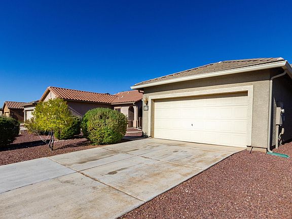 This is a very well kept 3 bed/2 bath home, with space for the whole family, located in Red Rock Village! Very nice and newly painted. This home is move-in ready. Large, very spacious and open living space with ceramic tile in kitchen, walkways and bathrooms. Open kitchen with beautiful cabinets and black appliances. Nice sized rooms with plenty of space for your family! Backyard has a covered patio, decorative gravel and trees! Seller is leaving the washer, dryer and refrigerator. Wonderful community amenities include: pool, splash pad, skate park, sports courts, jogging path, and much more! Very easy access to I-10. Located in a USDA approved area.