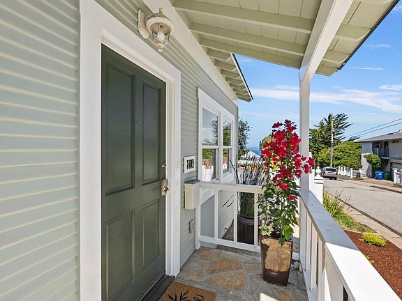 Welcome home to this charming coastal retreat in the heart of Pacific Grove. As you approach the quaint front porch, you are greeted with a view of beautiful blue Monterey Bay waters just a few blocks away. Step inside the spacious living area, centered around a fabulous open kitchen with large peninsula, granite counters, Sub Zero fridge, Thermador dishwasher and six-burner range, custom cabinetry with ample storage and a beckoning bay view from living room window. The original cottage was expanded with a second-story addition and further enhanced with various upgrades over the years. Recent 2024 improvements include new roof, section one termite clearance, new carpet and fresh interior and exterior paint. Upstairs, you will be swept off your feet by the huge primary suite featuring vaulted ceilings, skylights, walk-in closet, gas fireplace, private balcony, separate laundry room and luxurious ensuite bathroom boasting dual sinks, custom tile work, electric towel warmer and Grohe precision temperature shower. Enjoy wonderful bay views from multiple vantage points. Outside is a secluded brick patio with privacy shrubs and one-car garage with workbench. This adorable beach house is just minutes from Lover's Point Beach, Cannery Row, and the many wonders of the Monterey Peninsula.