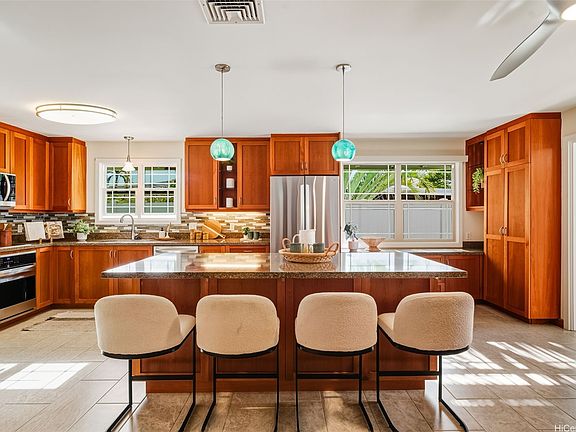Welcome to a place where comfort, warmth, and Kailua living truly come together. Nestled in the well-loved Kaopa neighborhood of Kailua, this 4-bedroom, 2-bath home offers nearly 2,000 sq. ft. of inviting interior space on a generous 6,000 sq. ft. lot. Cool central AC and abundant natural light create an atmosphere of ease and belonging. Inside, a second family room provides the flexibility every household appreciates, whether you imagine it as a play space, media room, or a cozy retreat for gatherings. Step out to the covered lanai, perfect for weekend mornings, evening dinners, or simply enjoying the breeze. The fully fenced yard offers privacy, and room to play, garden, or relax. Thoughtfully upgraded with an owned photovoltaic system, this home is designed for both beautiful living and long-term peace of mind. Located just minutes from schools, grocery stores, and Kailua’s favorite local restaurants, it brings everyday convenience right to your doorstep.