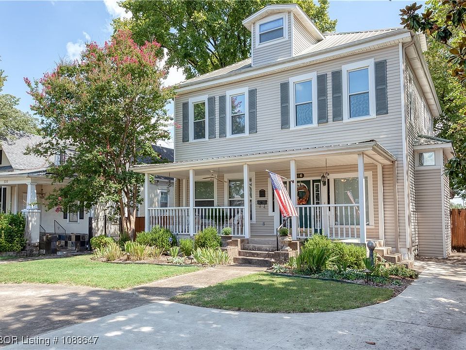 This fabulous historic 4 bed / 2.5 bath home maintians vintage charm yet artfully integrates modern comforts! Beautiful, original hardwood floors and millwork recall its original craftsmanship while updated windows, electric, HVAC, metal roof, kitchen, bathrooms, etc. ensure contemporary convenience. Primary bedroom with ensuite bath located on 1st level, 2 living areas, large bedrooms, renovated bathrooms. Perfect for entertaining or large family gatherings; plenty of parking with circle drive, additional side drive and covered parking in back. Stately yet comfortable, well maintained and move in ready!