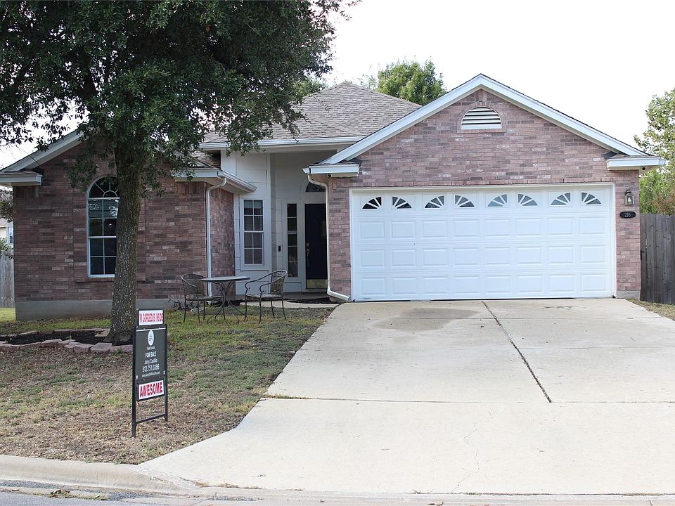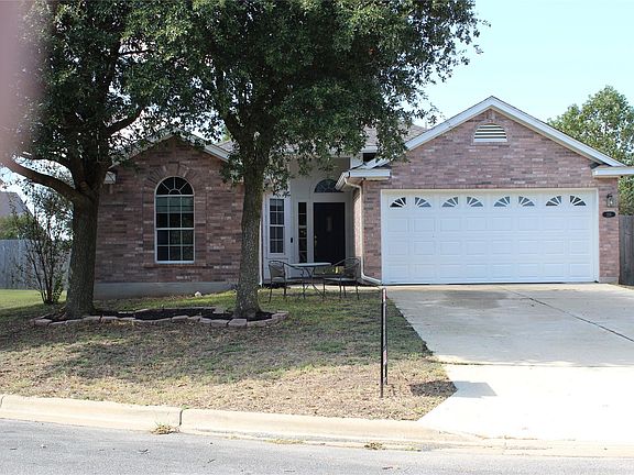 Great opportunity on this home that is move-in ready with many modern updates and upgrades. The 1,602 sq ft open floor plan offers 3 bedrooms, 2 full baths, fireplace, covered back porch and 2 car garage. New exterior paint, quartz countertops in the kitchen and bathrooms and new sinks. This home is carpet free with 100% wood-looking porcelain tile, fresh interior paint, tall format base boards, and LED ceiling lighting installed within last 2 years. The primary bedroom is large with lots of natural light. Recently installed privacy would fence with metal pipes on the right side of the house. Shaded backyard is a plus. ReoLink security cameras and doorbell all wired to on-site recording box convey. Location is a plus with quick access to IH-35, shopping, schools, parks, and neighborhood pool all close by.