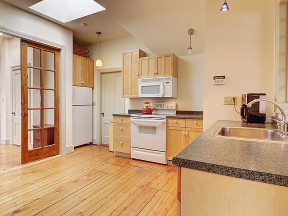 This spectacular 750 sq. ft. E. Side apartment is a 5-min walk to Brown, RISD, 10-mins to downtown and the train station. Occupying the entire top floor of a Victorian home, the private entrance apartment melds old and new into a beautiful living environment. Fully furnished, utilities included, and off-street parking. Five skylights light up hardwood floors, exposed brick, unique architectural features, a great room, sunny bedroom, modern kitchen and bath. A futon couch can sleep two additional guests. A beautiful park with a public running track and tennis courts is across the street. Sorry, but no pets. More Details This large sunny, apartment on the top floor of a three-story Queen Anne Victorian is private, comfortable, and filled with natural light. It is conveniently located in a safe historic, tree-lined residential neighborhood, and directly across the street from a large park. This plaque home is recognized in the Registry of Historic Properties. It is a perfect apartment for a professional who values space, quiet and a lovely area. The spacious and cheerful living room has ample space for relaxing with company, lounging or working. Couches and chairs and a 48" streaming tv provide a comfortable backdrop for relaxing or working. Two nooks provide nice spaces for reading or catching up with emails. There is a desk large enough to really spread out, filing cabinets and a comfortable, adjustable leather office chair. An ergonomic keyboard and mouse, and a laser printer enable you to keep up with your professional life in comfort. The bedroom, entered through large french doors, has a queen-sized bed, skylights, a Roku streaming tv, and a large walk-in closet. The mattress and all cotton linens are new and comfortable. Down pillows and down comforters are provided. Regular blankets and pillows are also available for those who prefer them. A futon couch in the living room opens to sleep two additional guests. The modern, fully equipped kitchen includes a full-sized oven and induction cooktop, a refrigerator and freezer, a dishwasher, a microwave, a coffee-maker and a toaster. The kitchen is fully outfitted with all the basics you will need to prepare either a quick snack or a gourmet meal. There are all manner of cookware and dishes, a table and chairs, ample counter space, and plenty of cupboards stocked with all basic condiments. We will have coffee, tea, cream sugar, and other basics waiting for you upon your arrival. The newly renovated but small bathroom has a tiled walk-in shower with very good water pressure. The apartment is filled with wonderful natural light. Windows and skylights open to the treetops and breezes, and an electric fireplace provides a toasty feel on cooler nights. The unit has two air conditioners that keep it cool during the warmer months. An ironing board and iron, a fan, toiletries, and a hair dryer are also provided. You have a completely private entrance, and free off-street parking. The apartment is right in the middle of everything: within a 5-minute walk through this rich, historical and architecturally diverse neighborhood are the Brown and RISD campuses, Benefit Street, Thayer and Hope Streets with their myriad coffee shops, restaurants and local businesses, Whole Foods, Staples, CVS, the post office and banks. You can easily walk downtown (10 minutes) to Waterfire, the theatre district, and the train station. India Point Park and the bike path that winds along the water all the way to Bristol is close by, as are seasonal ferries to Newport and Block Island. Please note there are two security cameras on the property; one facing the front door, and one facing the back door. Enjoy the lovely neighborhood! Owner pays for heat, electricity, water and sewer. This is available for a full year, but the owner will consider shorter lease periods.