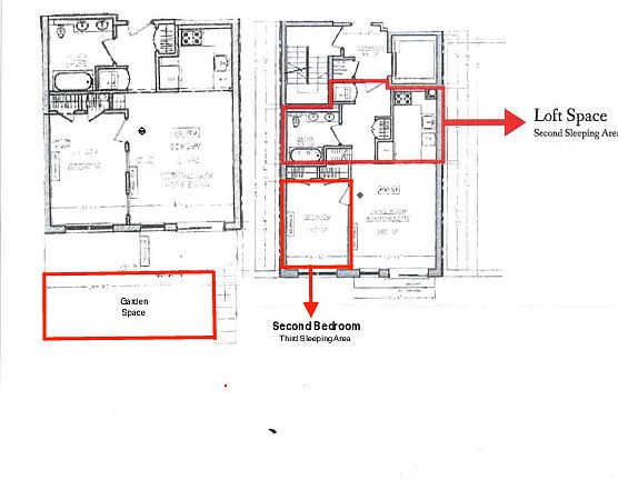Amazing Space in this unique floorplan featuring 20" ceilings in the living room, 1 bedroom on the first level with an additional room above the bedroom and another additional open loft space above the kitchen plus two outdoor spaces. Please note the loft space and second bedroom have 5'9' ceiling height. The living room has 20' ceiling and the first bedroom has 8'5' ceilings. Greenpoint Condominium One bedroom plus office/den /bedroom and additional separate large loft space. This amazing apartment features a private outdoor garden and a separate upper deck off the living room/kitchen perfect for grilling. The kitchen is well appointed with stainless steel appliances, cherry cabinets, and granite counter tops. The bathroom is tiled with great double vanity sinks and Jacuzzi tub. Washer/Dryer conveniently located in unit. Enjoy having central A/C and roof deck with wonderful Manhattan views. Top it all off with convenience to shopping, trains, restaurants and midtown Manhattan.