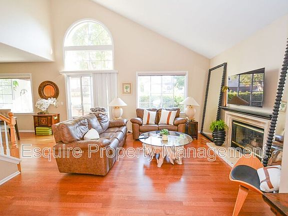 Very desirable end unit in Palm Colony, a secure, gated community, featuring a spacious 3-bedroom, 3-bathroom layout with vaulted ceilings and large windows that fill the home with natural light. The kitchen features oak cabinetry, granite countertops, and a center island with seating. The living room and den boast hardwood flooring, while two fireplaces (no warranty) add charm, one in the living room and another in the upstairs primary suite. The layout includes one downstairs bedroom with a full bath (currently used as an office) and two en-suite bedrooms upstairs. The home offers a private patio area for outdoor enjoyment. Palm Colony offers resort-style amenities, including a pool, saunas, racquetball court, pickleball court, gym, tennis courts, clubhouse, and more, along with a community RV parking lot.