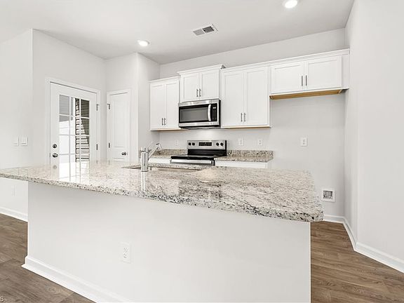 The Maywood is one of our two-story townhomes featuring 3 bedrooms, 2.5 bathrooms, 1,429 sq. ft. of living space, and a 1-car garage. Upon entering the home, you’ll be greeted by an inviting foyer that leads you to the dining area, then into the heart of the home. The open-concept layout features a large family room and a functional kitchen. The kitchen is equipped with stainless steel appliances, beautiful granite countertops, cabinets with ample storage space and a spacious center island, perfect for cooking and entertaining. At the back left corner of the first floor you’ll find the covered patio, ideal for relaxing outside or unwinding after a long day. The second floor encompasses the spacious primary bedroom, complete with a walk-in closet, walk-in shower, and a dual vanity. The two additional bedrooms sit at the back of the second floor and have access to a full bathroom as well. The laundry room completes the second floor.