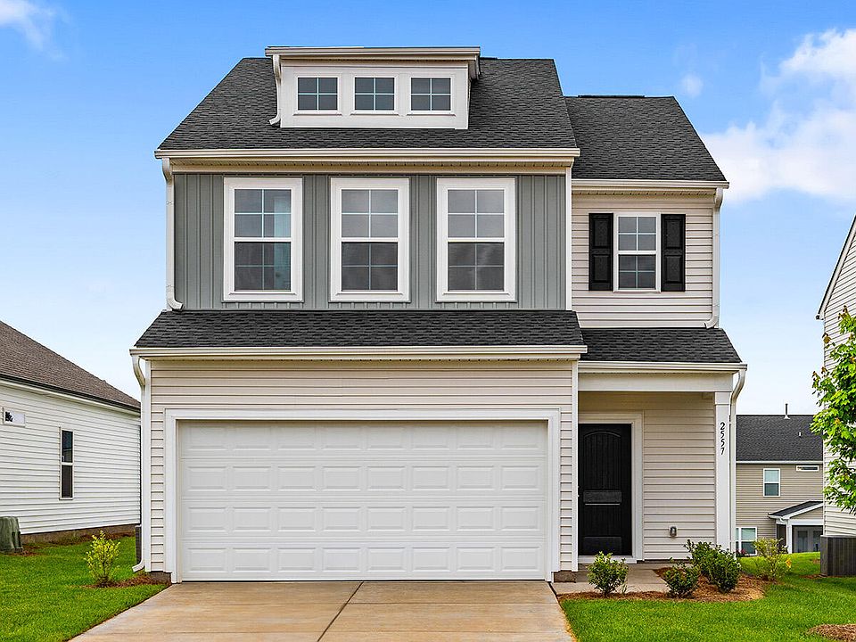 Ready February! Welcome to Central Creek, a brand-new boutique community in the heart of Goose Creek! This beautiful two-story home blends comfort and style with 3 bedrooms--each featuring a walk-in closet--and 2.5 bathrooms. The open first floor offers a spacious family room and a versatile flex space perfect for dining or a home office. The modern kitchen impresses with upgraded cabinets, quartz countertops, and an eat-in area that flows to a covered porch--ideal for morning coffee or relaxing evenings. Crown molding and luxury vinyl plank flooring extend throughout the main level for a refined touch. Upstairs, a loft adds extra living space, while the primary suite features a large walk-in closet and spa-like bath with dual sinks and a walk-in tiled shower.