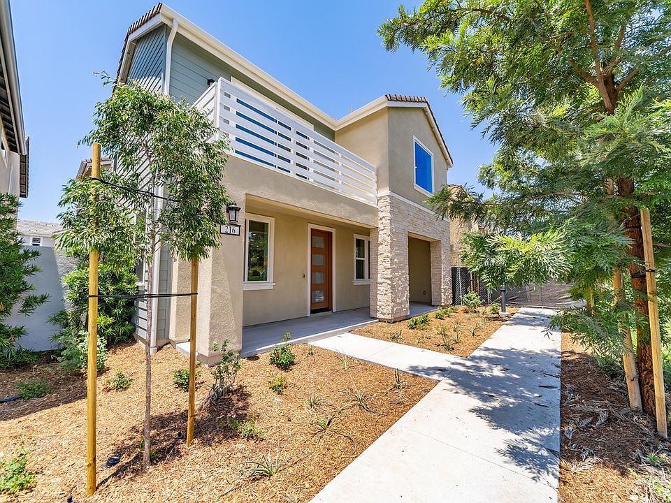 Luxury 4-bedroom, 3.5-bathroom, 3,010 sq. ft. PARK-FRONT home in Irvine's Great Park. Parents can monitor children playing in the park from the living room, or kitchen. STEPS from top-rated Solis Park Elementary (K-8) and Portola High School (9-12) in Irvine Unified School District. Bright and airy, this modern home boasts abundant windows with scenic park views, perfect for entertaining and relaxing. Sliding doors open to a private landscaped garden, ideal for hosting. The main level features a DOWNSTAIRS BEDROOM with ensuite bathroom, powder room, open floor plan great room, dining room and gourmet kitchen with quartz countertops, GE Monogram appliances, shaker-style cabinetry, and attached 2-car garage pre-wired for EV charging. The second floor offers a bonus room and primary suite with walk-in closet, deck, and spa-like bathroom. Includes 9-foot ceilings and $100,000 in upgrades: custom wainscoting, premium flooring, designer shades. Smart home features: dual-zone thermostats, smart locks, smart doorbell and garage door. Solar cells and water softener reduce utility costs. Enjoy Great Park amenities: pools, playgrounds, trails. Fully furnished option available (+$1,500/month). Book your tour today!