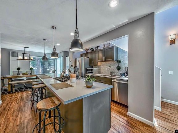 Modern 2 master bedroom townhome in Lake Village! Filtered lake views! Furnished & ready to go. Tax perks of living on the Nevada side of SLT, and if you're into skiing only 3 minutes from the Heavenly Gondola or 10 minutes to the Stagecoach parking lot. Tons of trails steps from the front door, or a 15 minute walk on the paved path to Nevada Beach or around Hill Beach. Path accessible to Safeway, Post Office, nail salon, dry cleaning, dollar store and more. Less than 1 mile from Stateline Casinos, Restaurants, and Shopping Owner pays for utilities and then bills renter. Last months rent due at signing. No pets. Renter must abide by Lake Village HOA's rules. No smoking allowed. 2 parking spots permitted, 1 assigned and 1 unassigned.