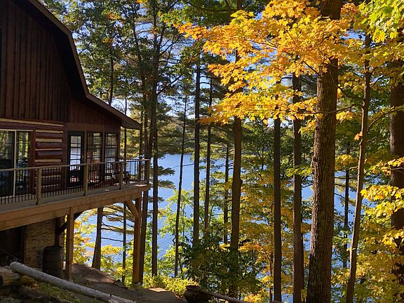 300.47 ft of waterfront property nestled on a quiet private lane along the pristine shores of Big Crosby Lake, in a welcoming and well-established gated lakeside community! This custom-built log home provides a four-season tranquil retreat, ideal for nature lovers and outdoor adventurers on a 299.79 ft x 260.65 ft lot. The main level welcomes you to a spacious foyer with tile flooring and tongue-and-groove hardwood walls, which leads to an open-concept family room and eat-in kitchen, unified by hardwood flooring, exposed beams, and a freestanding wood stove with a stacked stone surround. The custom Butternut kitchen looks out to both the treed property and the beautiful lake, while the sliding glass door leads to the massive 3-season screened-in porch. Upstairs, the primary bedroom has soft carpeting, natural wood accents, and dual closets, while the expansive second-level living area has flexibility as additional bedrooms, a workspace, or a creative studio. A bathroom on each level, both updated in 2021, completes the interior of the home. Outside, a large wood storage shed, a firepit area, walking paths, and a three-car detached garage are all found in the wooded portion of the property. On the lakeside, wide elevated decks run along both sides of the home, while just below the sunroom, a gravel terrace provides a shaded gathering area with access to the private, low-maintenance stone path leading to the lakeside deck and private dock. Big Crosby Lake is spring-fed and home to bass, pickerel, and a variety of panfish, offering exceptional swimming, fishing, and boating. Located just 1 km from pavement, Connies Lane is a quiet, walkable road with only 12 cottages and no further development - maintained by a stable group of long-term owners, making this home a quiet, unforgettable lakeside experience. Some photos have been virtually staged.