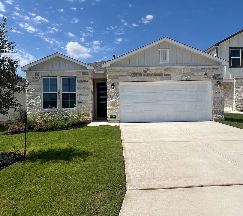 Welcome to 216 Connor Creek, a beautifully designed single-story home in the scenic Hunters Ranch community of Far Northwest San Antonio. This 4-bedroom, 2-bathroom home offers 1,522 sq ft of thoughtfully planned living space, ideal for modern lifestyles. At the heart of the home is a stunning upgraded kitchen, featuring premium gas appliances, a large island, generous pantry, and a dedicated dining area-perfect for both everyday meals and entertaining. Just beyond, the covered rear patio extends your living space outdoors. The primary suite is privately located at the rear of the home and includes a spa-like bathroom with a walk-in shower, dual sinks, and a spacious walk-in closet with custom built-ins. Guest bedrooms are thoughtfully positioned toward the front of the home, with a shared bath and an additional bedroom tucked away-ideal for visitors or multi-generational living. Additional highlights include: Open-concept layout filled with natural light Energy-efficient construction Smart layout designed for comfort and privacy Located in Hunters Ranch, with easy access to top-rated Medina Valley ISD schools, shopping, dining, and entertainment.