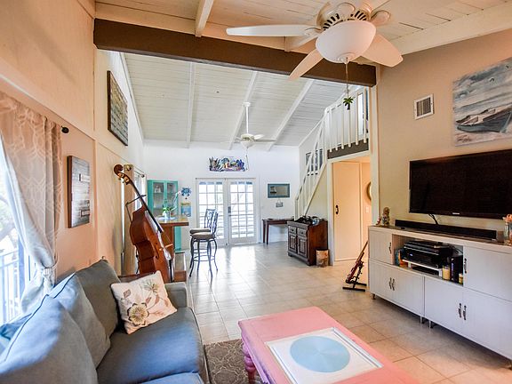 3 lots in from the Ocean! Enjoy your Ocean views and beautiful ocean breezes from your screened balcony and huge downstairs entertainment area. Lots of upgrades in this 2 bedroom 1.5 bath stilt home with huge vaulted ceilings. There is even a bonus loft office/playroom. Move right in and enjoy the large lot with plenty of room to park your boat. Garage/workshop. Located in a great oceanside neighborhood directly across the street from Founder's Park. upgrades include a newer metal roof, updated kitchen and appliances, impact glass on main floor, railings, A/C and water heater.