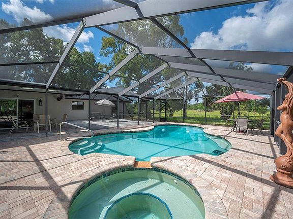 This outstanding home located on 2 private acres, has to be seen to be believed!! NO HOA! NO CDD!, NO Water bill, NO Sewer bill! Everything has been updated with exquisite attention to detail by the current owner. A slice of Old Florida charm with every modern convenience! Open floor plan, that accentuates the outside view through the bay window in the spacious living room that boasts real Harwood flooring throughout. Once inside you will be captivated by the old Florida touches in the dining room. Look up and you will see the wooded, cedar ceiling, then the wood burning free standing fireplace just to name a few. The kitchen is a cooks dream! Plenty of cabinets for storage, gleaming granite countertops with a waterfall edge, stainless steel appliances and a wine/beverage fridge! The large walk in pantry & storage filled breakfast bar can hold anything all the entertaining items you may have. Just off the kitchen is the coziest breakfast room with wood details and casement windows - Old Florida feel, right there! Primary bedroom is very spacious, enjoy 2 walk in closets and a private bath that has been remodeled and personifies European luxury. Heated, smart commode with built in bidet, whirlpool tub and separate steam shower, all enveloped in the most elegant porcelain tile walls. You will feel like you are in the Mediterranean! Each bathroom has been remodeled to the finest detail, granite vanities, tiled showers, even the pool bath is stunning. This home has a porte-cochère, French for carport, generously sized for bringing in groceries during the summer rains. Owner entrance on this side of the home is covered, and leads into the lovely, spacious mudroom, complete with a/c and an original second stone fireplace, large window and additional, separate entrance completes the space. Through the double doors, you will find the inside laundry room on the left, Fourth bedroom is currently utilized as an office, but perfect for a guest room or family room. Kitchen is directly to the right for grocery convenience. Outfitted with the latest stainless steel appliances including a wine/beverage refrigerator. Outside space is unbelievable! Stone pavers line the floor of the completely screened pool/patio area, loads of space for dining al fresco, pool parties, whatever strikes your fancy. Completing this very special property is the 2 story Barndominium. Currently outfitted as a gym with 2 a/c units and all equipment stays! Second floor has flooring & electric, perfect for a clubhouse/teen hangout! 2 additional storage sheds on property for all the toys. Fully fenced and the cute cows are your current neighbors! 2 full acres, NO HOA, private septic & well system, recent roof replacement & newer windows. Close to Lithia Springs and Alderman's Ford Conservation area, easy access to Brandon. Make this your forever home, it's a beauty!!