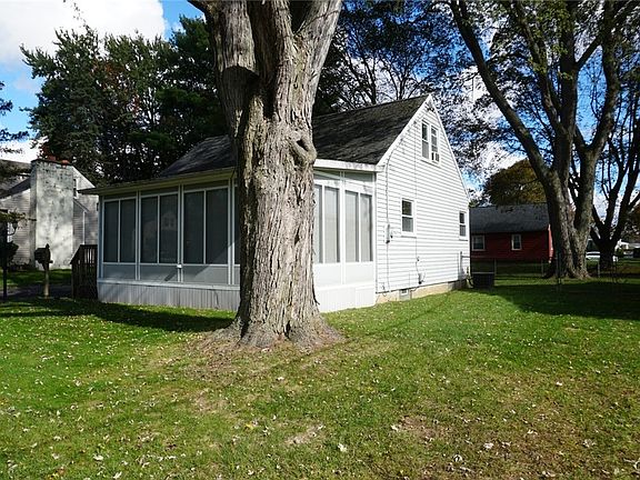 The home also features an enclosed front porch. Use caution during your visit—the flooring under the first-floor bedroom and part of the bathroom is missing. When you inspect the property, you will be entering from the garage into the kitchen area (now fully gutted), and the dining room opens to the kitchen. Both the dining room and living room still have the hardwood flooring.