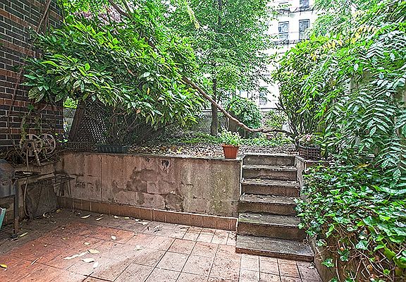 The Parlour level, with its many original prewar details of 12 ft ceilings, oversized windows, fireplace and custom bookshelves, consists of the Living Room, Formal Dining Room, Kitchen and Guest Bath. This floor can be accessed from outside the stoop or from the internal staircase of the garden level office.