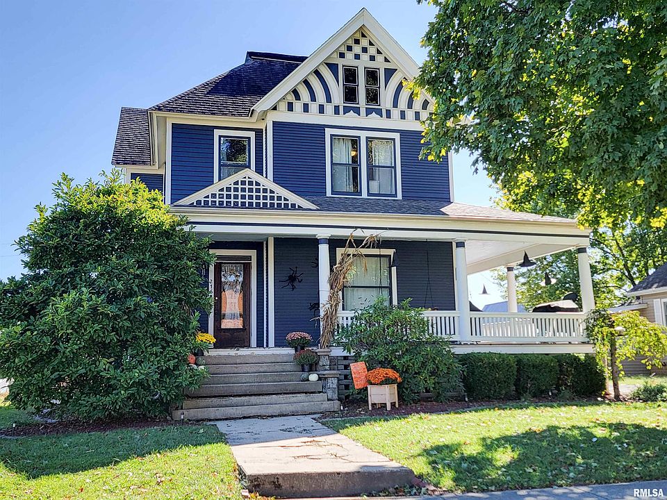 Classic Queen Anne Beauty — A Rare Find! Classic homes like this are few and far between and seldom come on the market. Built in 1910, this stunning Queen Anne–style home is as solid and timeless as it is beautiful. The exterior features period-appropriate paint, original wood siding, and a wrap-around front porch perfect for relaxing on crisp fall evenings. The yard is thoughtfully landscaped, and the fenced area is ideal for children and pets. Step inside and be greeted by the charm of the early 1900s — unpainted woodwork, pocket doors, and gleaming hardwood floors. The living and dining rooms boast 10-foot ceilings and elegant décor. The spacious kitchen includes abundant cabinetry, a breakfast bar, and plenty of room for the chef who loves to entertain. The first-floor primary bedroom stretches over 20 feet long and features an en-suite bath and an expansive wall of closets. Upstairs, you’ll find four more large bedrooms with tall ceilings and a second full bath complete with the original 1910 claw-foot tub. The third floor offers excellent storage or potential expansion space. The basement includes laundry, generous storage, and updated ductwork. Modern updates include dual HVAC systems, a 200-amp electrical panel with Romex wiring, and an updated meter loop. Solid. Original. Loved. This is a one-of-a-kind home that’s ready to welcome its next owner.