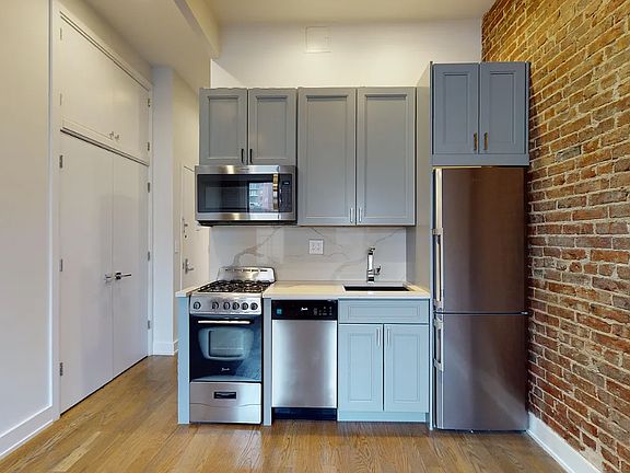 This Gorgeous 1 BR home in Elevator building with Roof Deck and Laundry in building!! This one has been renovated from scratch behind a classic prewar facade. Very charming and completely modernized apartment with large windows, great light, roofline views, hardwood floors, custom designer kitchen with stainless steel fridge, range, microwave and dishwasher. A frosted door leads to a marble bath with glass and subway tile shower. The bedroom is off the street, very quiet and super private. Lots of charming Upper East character is preserved, including exposed brick and high ceilings. There is a large common roof deck for entire building. Building has a $20 Monthly Cooking Gas Fee. $20 per adult laundry fee for unlimited usage. There is a $20 application fee per applicant. Located in a quiet area of the Upper East Side, this apartment offers convenience with its proximity to subway stations and bus stops. It provides a comfortable and stylish living space in a desirable neighborhood. $20 per person application fee applies. Showings daily!